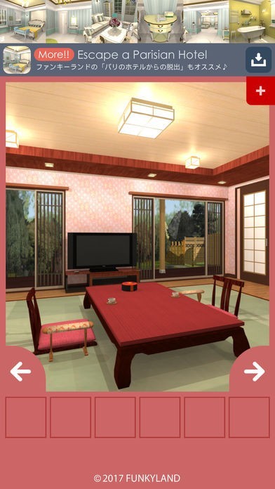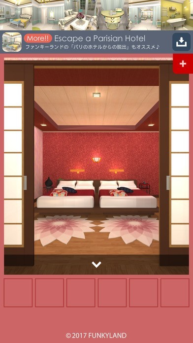 おしゃれな雰囲気の気軽で難易度やさしめの脱出ゲームです。夕食の豪華会席をいただくために、アイテムを探して謎を解き、温泉旅館から脱出しましょう。