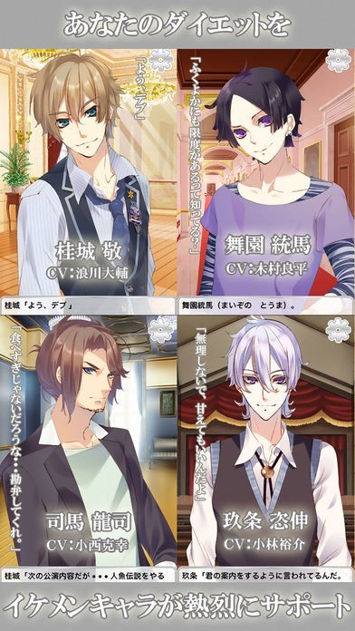 あなたが一生懸命頑張っている姿をイケメンが側で見守る。最高のシチュエーションでダイエットに挑めます。目標を達成したらイケメンが告白してくれるかもしれません。人気声優がたくさん出演しており、ファンには堪りません。