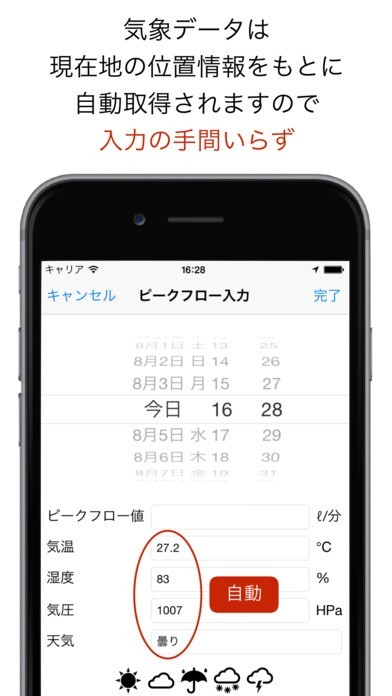 喘息に悩む方、喘息を患っているお子様のご両親のための日々の気象の記録機能