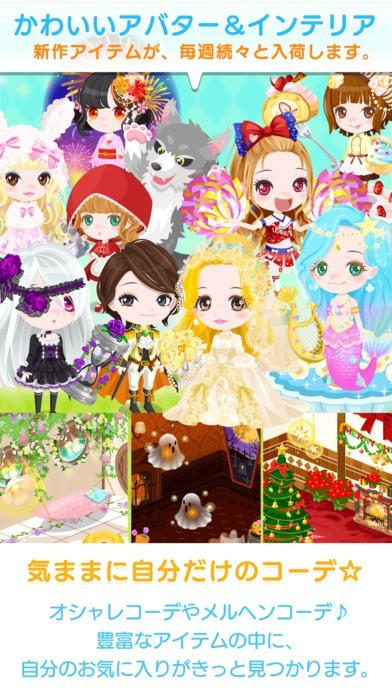 「コロミィ - よくばりアバターコミュニティ」は数百点あるアイテムを使ってアバターをおしゃれに変身させたり、お庭を育成していくことができるアプリです。ハロウィンや夏祭りなど、季節に応じたイベントも随時開催されます。イベントの時しかもらえないアイテムもあるので必見です。果物を集めると、お庭のアイテムと交換することができます。アプリ内にある広場に行くと、全国の他のユーザーとお話をすることもできるので、仕事の息抜きにもぴったりです。