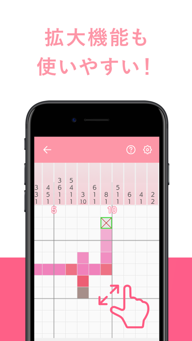 拡大すると5マスずつマスにガイド数字が表示されたり盤面が透けて塗っているマスが見えるので、