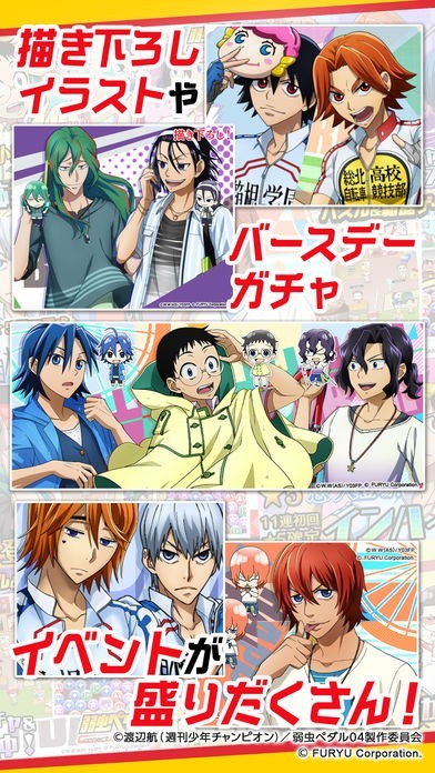 大人気アニメ「弱虫ペダル」がついにゲームアプリになりました。 同じ色の球を三つ以上つなげるシンプルなパズルゲーム。 自分の好きなキャラクターだけでチームが作れ、キャラクターが待機するルームも自分好みのにすることが可能です。 育てたキャラクターで、自転車レースを勝ち抜いていきます。 イベントでは、このゲームアプリでしか見ることができない特別描きおろしキャラクターで入手することもできます。季節にあわせたイベントも存在するので、そのイベントにあった衣装のキャラクターも出できます。