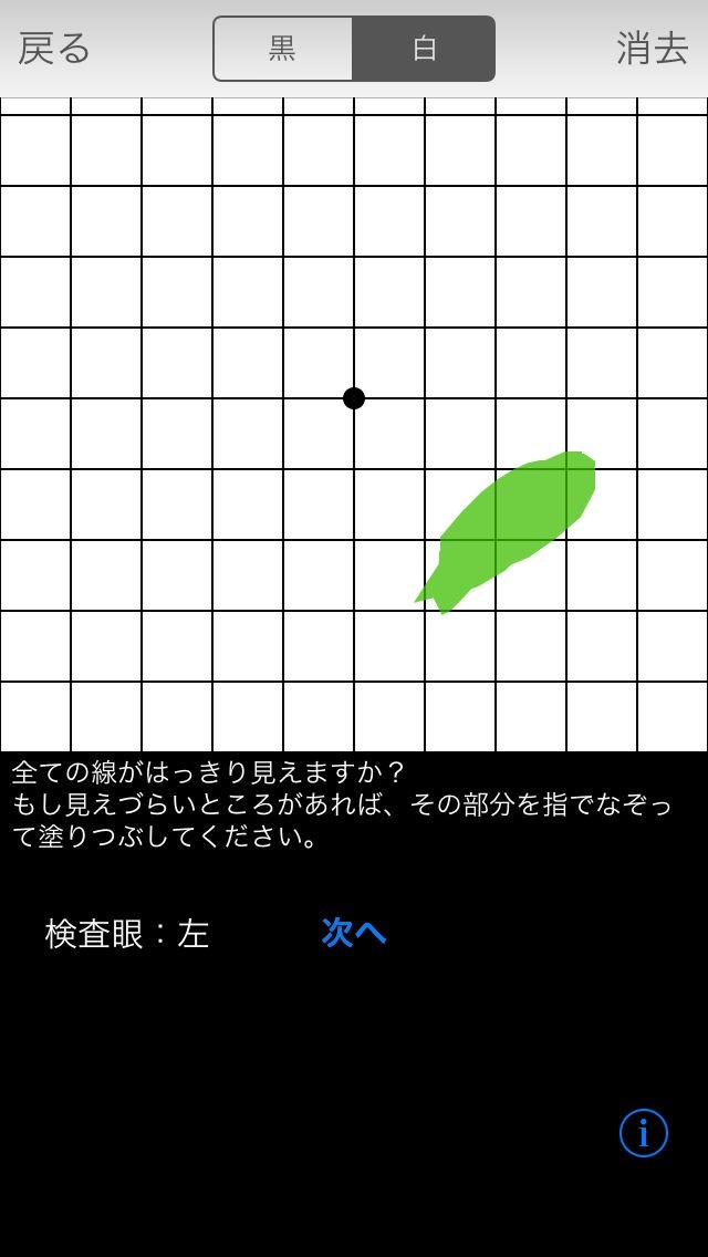 このアプリケーションは、中心視野に異常がないか検査するものです。