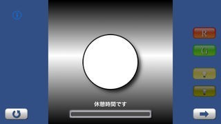2. 円が10秒間表示された後、休憩時間として2秒間白い円が表示されます。これは、長時間同じような色を見続けた時に発生する目の錯覚を防ぐためです。