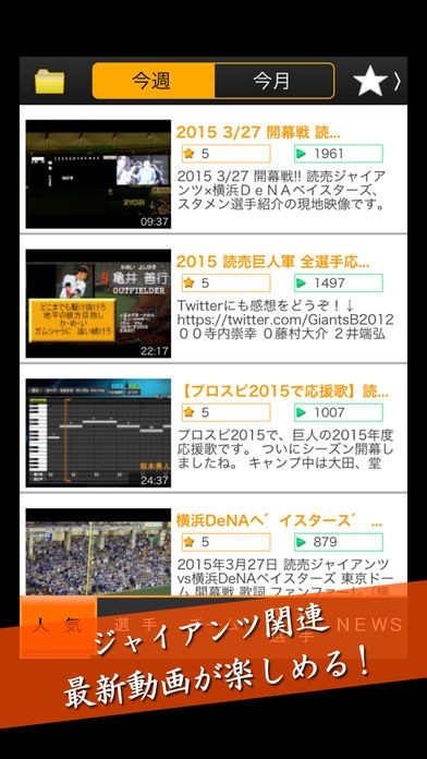 ■人気動画 今週 / 今月の新着ジャイアンツ関連の動画が楽しめる!