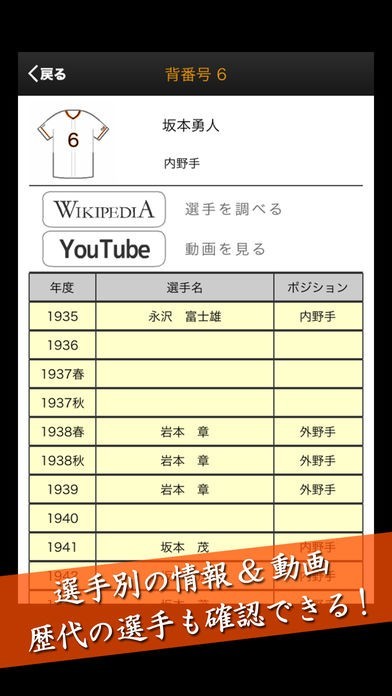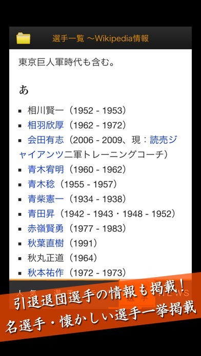 現役 / 歴代の選手の情報データも確認可能。球場でも、テレビの前でも今すぐ確認できる便利機能搭載! ジャイアンツファン必携のアプリです!!