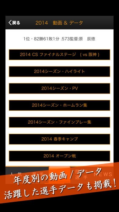 App Storeより引用2016年シーズンに完全対応! 読売ジャイアンツの最新ニュースとともに、チーム&選手データと動画が毎日楽しめる無料アプリです。