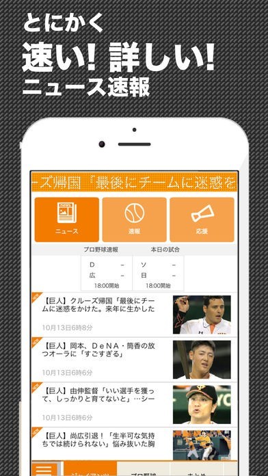 速報ニュースはプッシュ通知、ロールスーパーで随時更新! チームNewsだけでなく、プロ野球、まとめ、高校野球、MLB、CS、日本シリーズ、FA、トレード、ドラフト、契約更改、戦力外、トライアウト、ファーム、キャンプ、自主トレの豊富なジャンル分けで楽しめます。