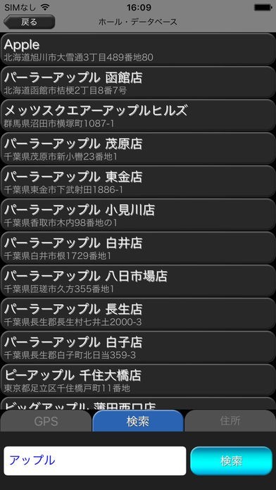現在地から近いホールを検索できる