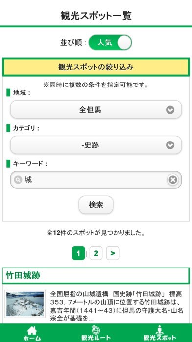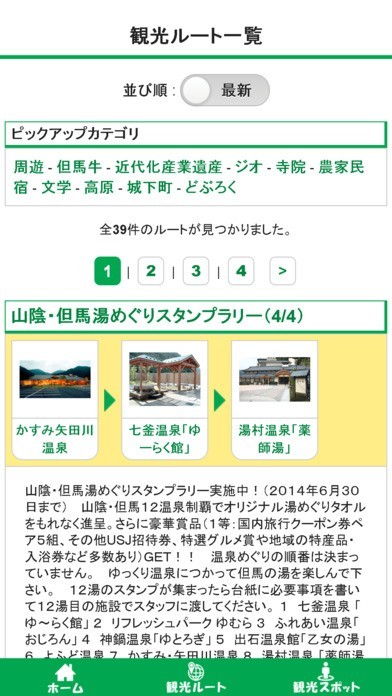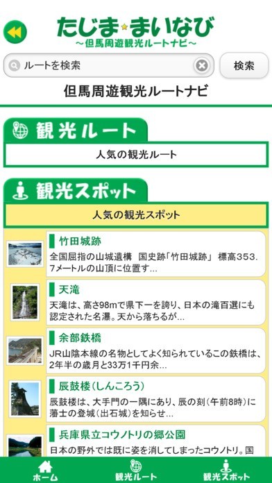 App Storeより引用兵庫県北部に位置する但馬地域のおすすめ周辺観光ルートを案内するアプリです。