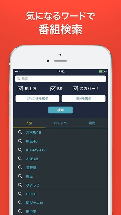 無料で地上デジタル放送、BS、CSのテレビ番組表をスマートフォンでチェックできる!