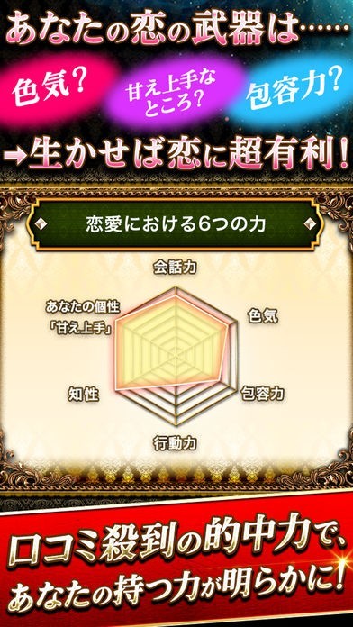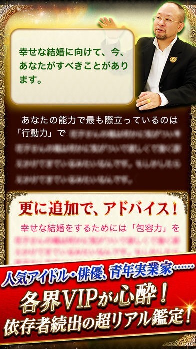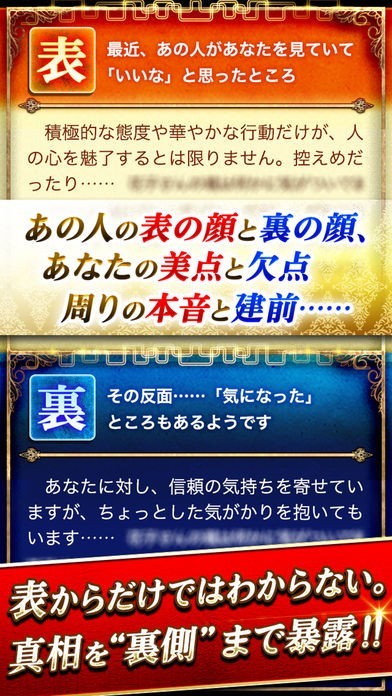 テレビで当たりすぎると話題の人気占い師に鑑定してもらえます。とにかくすごい的中率で、出演者のスキャンダルまで暴いたほどです。その腕前をアプリで体感することができてしまいます。
