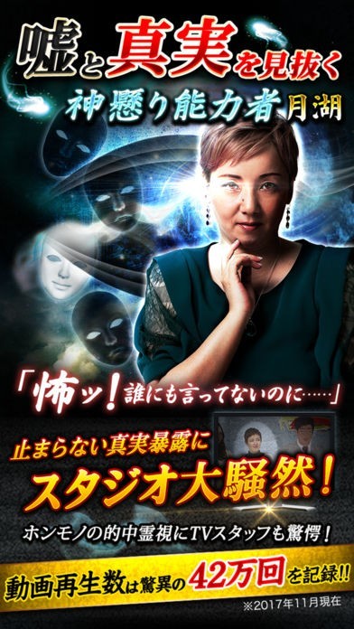 的中霊視の凄さにTVスタッフすら恐怖した驚異の霊視占い師が鑑定してくれるアプリです。予約問い合わせが殺到して占ってもらうことが難しい月湖先生にスマホで簡単に見てもらうことができます。