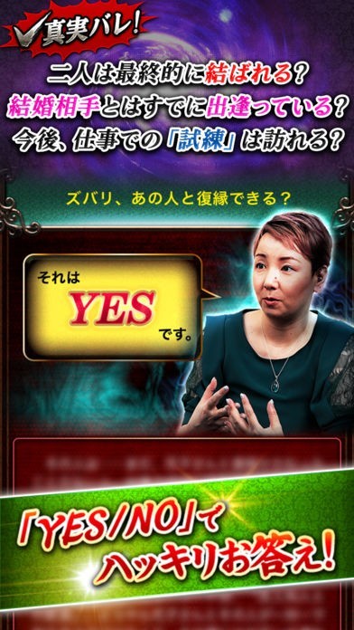 神がかり霊視占いは、YESかNOではっきりと運命の相手まで占ってくれます。どんなに魅力的でも偽物を選んでは幸せにはなれないと、他の占い師では言いにくいことまでズバリとアドバイスしてくれます。結婚に迷ったときには最適のアプリです。
