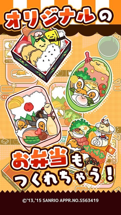 ぐでたまで作ったかわいい卵料理を使ってオリジナルのお弁当が作れます。出来上がったお弁当はSNSでシェアできるので、友達同士で見せ合うこともできます。作ったお弁当にはぐでたまからのコメントももらえますよ。