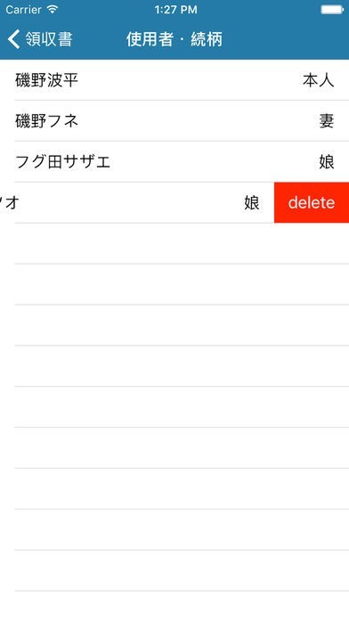 ・お店、住所、購入者、続柄など一度入力した項目は履歴から簡単入力!