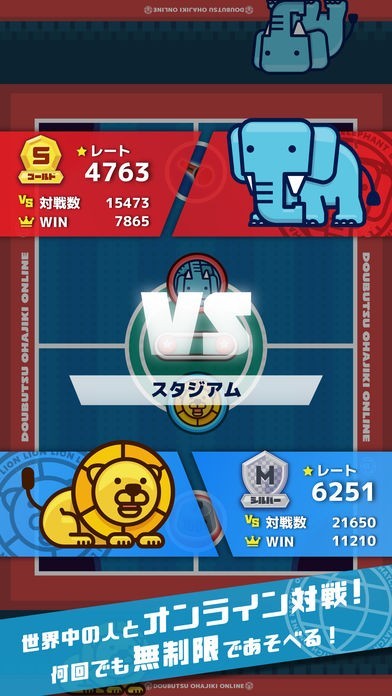 1:14体の個性豊かな『どうぶつおはじき』の中から、ひとつを選んで対戦スタート!