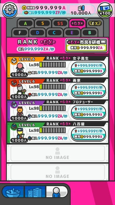 マシンから排出される市民にはEからEXまでのランクがあり、サラリーマンやカフェ店員など様々な人がいます。マシンをアップグレードするとランクの高い市民が出やすくなります。