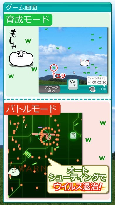 「w」をたくさん食べさせて”謎の生物”を育てよう!