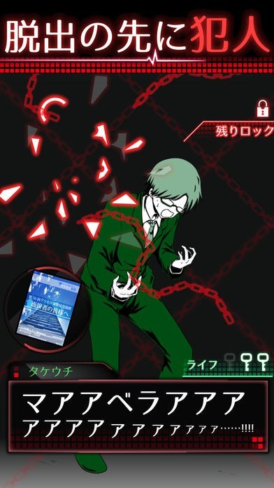 閉じ込められた状態から、色々な道具を使って脱出します。SNSを使えば友人達と連絡をとることができ、手がかりを貰うことが可能です。部屋の探索とトークで、犯人の魔の手から逃れます。