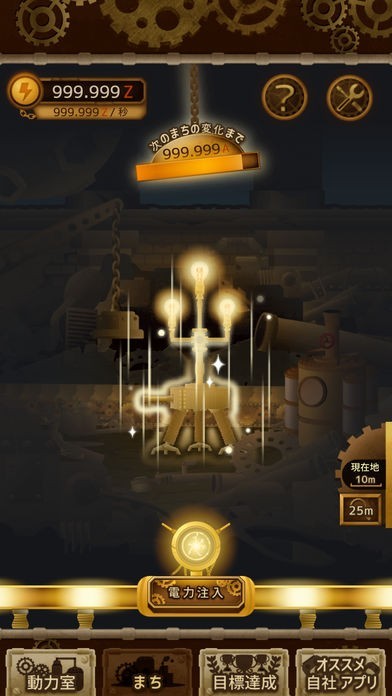 「はぐるまのまち」では画面をタップすることで電力が発生し、その電力を使ってまちを発展させたり発電装置をさらに豪華にしていくことができます。一見複雑そうなゲームに見えますが、基本的にタップだけで進めるカジュアルゲームです。ともすると電力を貯めたり発電装置をパワーアップしていくことに夢中になってしまいがちですが、まちを発展させるための電力注入も忘れないようにしましょう。また発電の画面で時々飛んでくる不思議な機械は電力が入ったアイテムや発電力をブーストするアイテムなどをくれるので、放置せずにタップするようにしてください。BGMがなく淡々とした機械音だけが聞こえてくる珍しいスタイルのこのゲームは、興奮や爽快さを得るのではなく一人静かに落ち着いた時間を過ごすことができるアプリです。