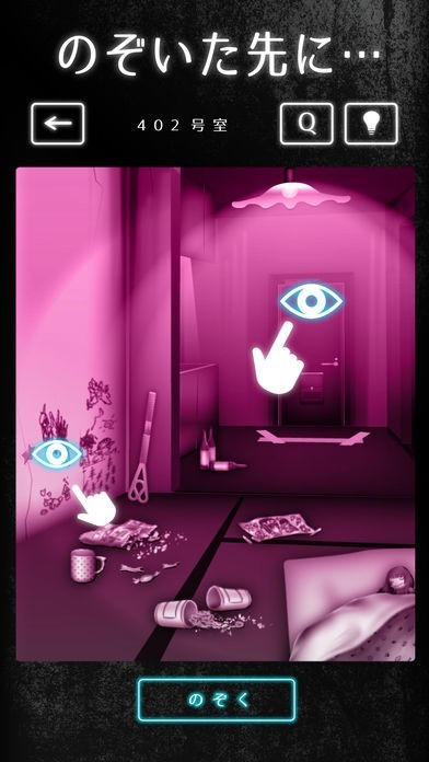 暗闇に浮かび上がる部屋のスチルから、もう雰囲気があります。ヒントや質問から推理して、ひとつづつタップしていくゲームですが、ちりばめられているストーリーが面白いので、ついつい夢中になってしまいます。