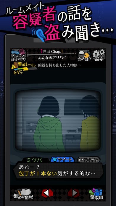 ルームメイトがある日誰かに襲われます。その犯人が誰なのか、部屋を監視しながら推理を進めていくことができます。襲撃犯を追い詰めるまでの展開を楽しむことができるでしょう。