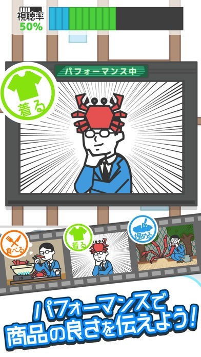 テレビショッピングらしく、商品を使ったパフォーマンスやVTRがあります。商品にあったものを選ぶことで、視聴率も売り上げも伸びていきます。 わからないときはカンペを見るとヒントを教えてくれますよ。