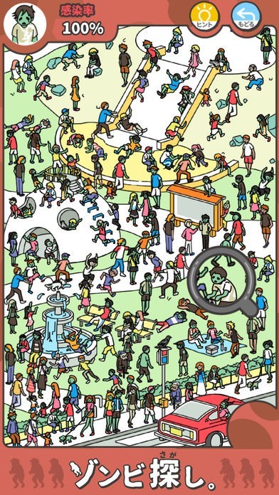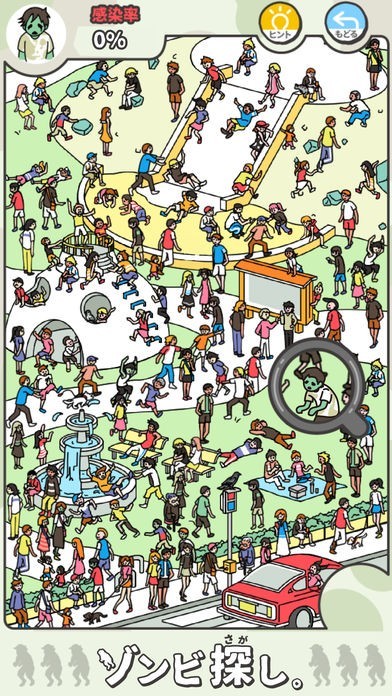 群衆の1人1人が丁寧に描かれており、まるで一枚の絵のような完成度です。ゾンビを探しながら人々の様子をじっくり眺められます。宝さがしをする気分で気軽に遊べるゲームです。