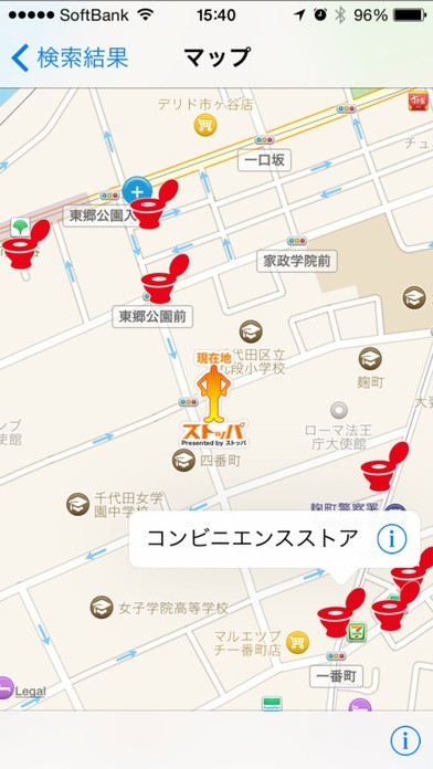 近くのトイレやきれいなトイレを検索機能でサッと探せる
