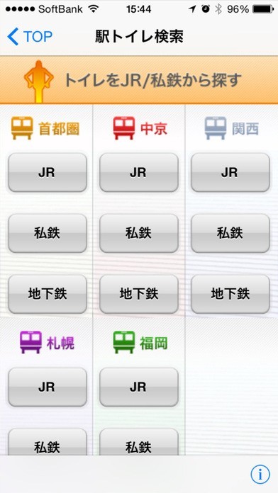 駅名や現在地をもとに近くのトイレを検索可能