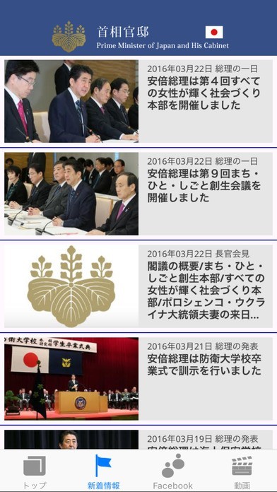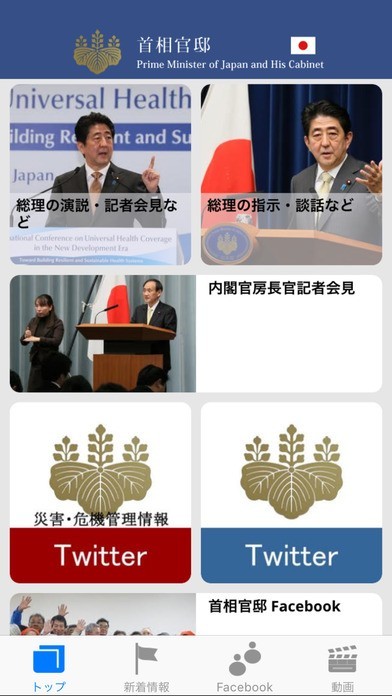 首相官邸が配信する公式アプリ首相官邸関連の新着情報や総理に関する最新情報をお届けします