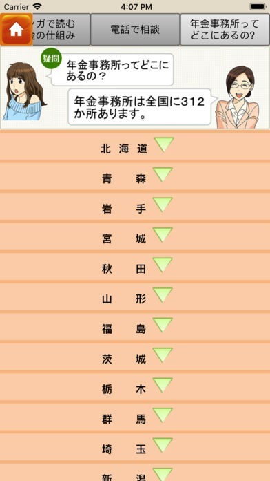 最新の公的年金情報を動画や漫画等により、手軽に入手できるほか、年金額を簡易に試算する機能やGPSによる年金事務所のルート案内機能などを備えています。