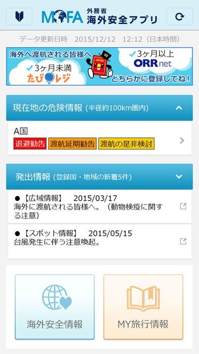 国の情報と安全度がとても分かりやすいので便利です。旅行や出張の時には必ず使っています。