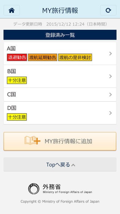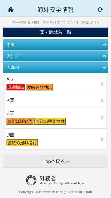 海外安全アプリは、外務省による危険情報を国や地域別に見ることができ、テロ情報にも敏感になれる