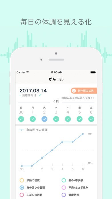 4.がん治療中の副作用や治療スケジュール等を記録することができます。