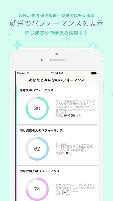 5. アプリ参加者の同じような状態(同年代、同疾患など)の人のパフォーマンス(絶対的プレゼンティズム)を見ることができます。
