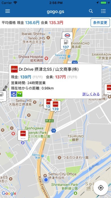 ガソリン価格比較アプリ gogo.gsのスクリーンショット