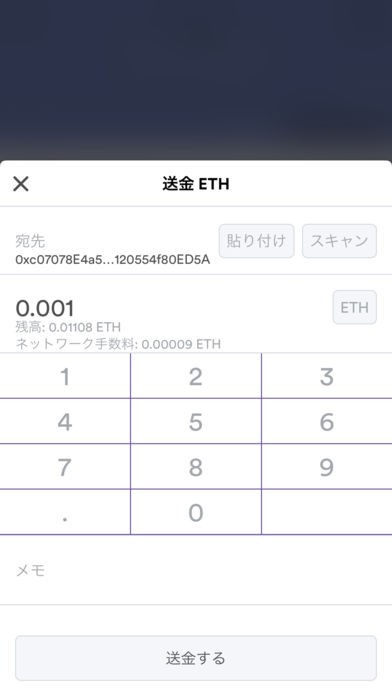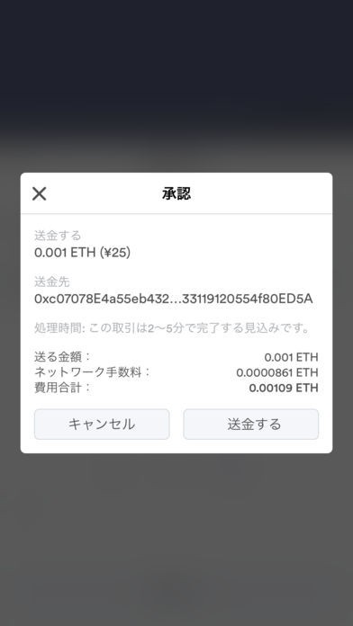 ・通貨送信 送信先(QRコード読み取り)、数量を指定して仮想通貨を送信できます。