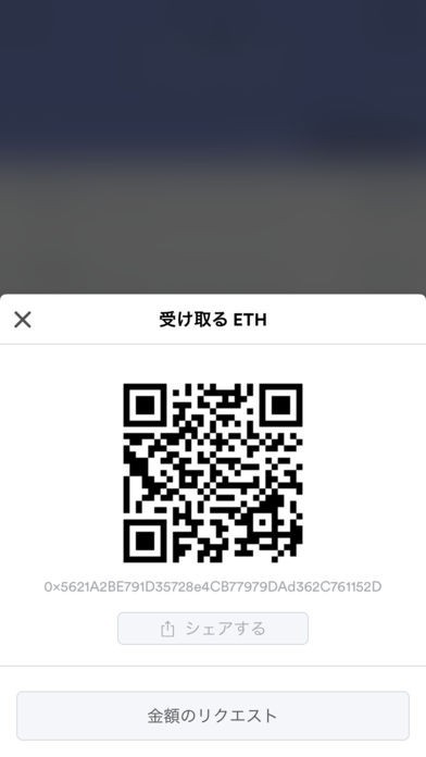 ・通貨受信 自分のウォレットのアドレスと必要に応じて請求金額をQRコードで表示します。これを相手に読み取ってもらうことで、簡単に送金してもらうことができます。