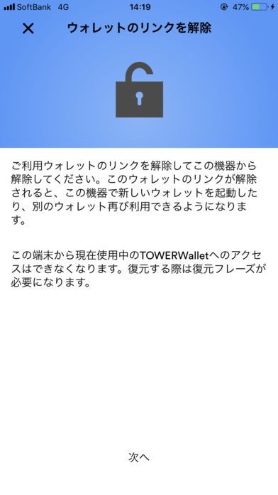 ・ウォレット削除 復元情報の確認後、ウォレットを削除し、新たなウォレットを設定できます。