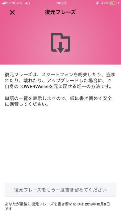 ・復元フレーズ 復元フレーズを確認できます。