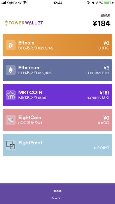 BitCoin,Ethereum,EightCoinなどの(ERC20)トークンに対応したウォレットを簡単に作成・管理できるアプリです。
