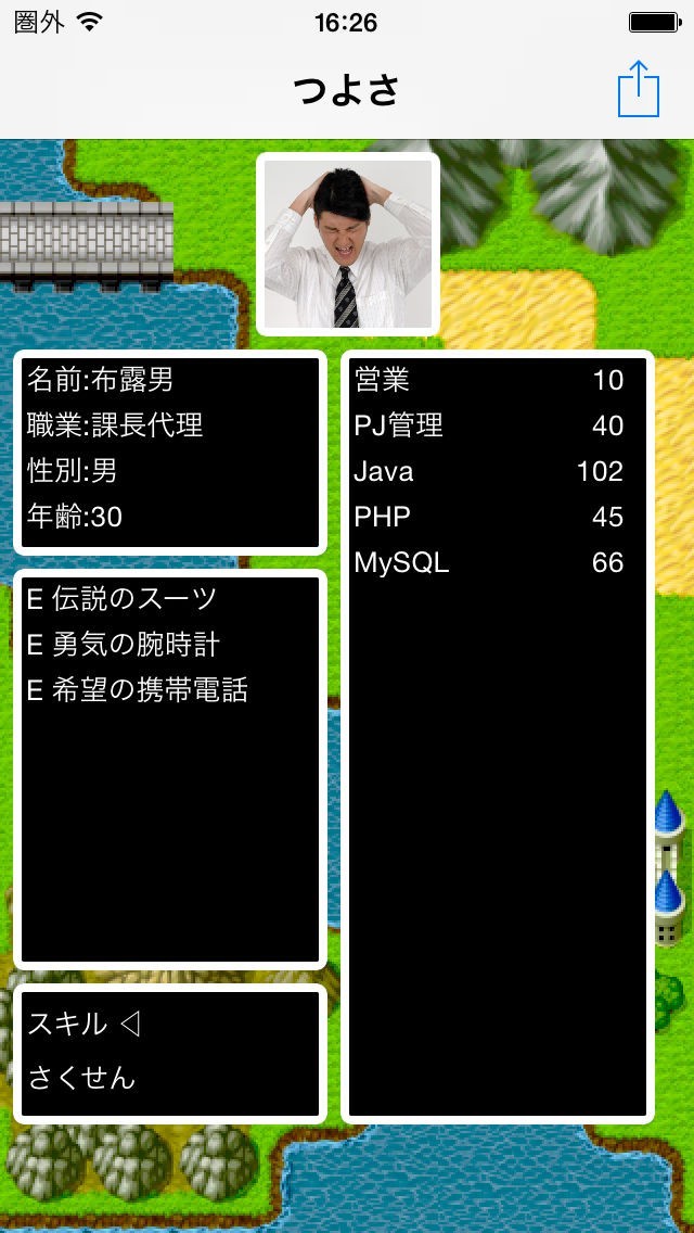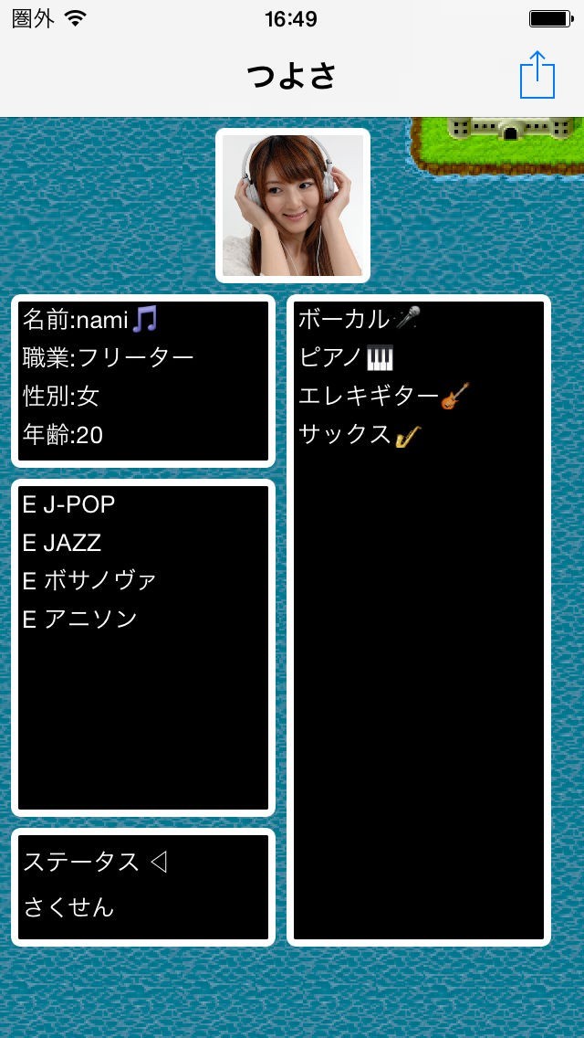 ステータス成長でやる気もアップ!ゲーム画面のようなプロフィールはメール送信で友達に自慢できる!