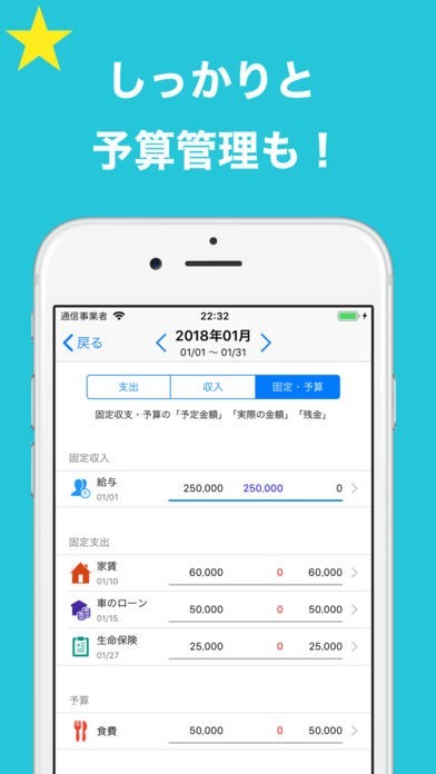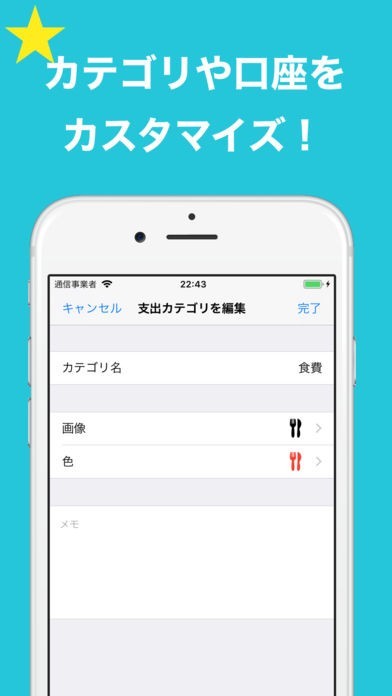 食費や娯楽等の様々なカテゴリーが用意されていて、項目別に予算を設定する事が可能です。そのため、節約したい時や無駄遣いを無くしたい時に重宝するでしょう。集計金額や残金の表示にも対応していますよ。