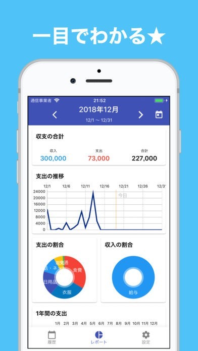 毎月・毎日の収支をグラフ化!お金の流れを把握できる