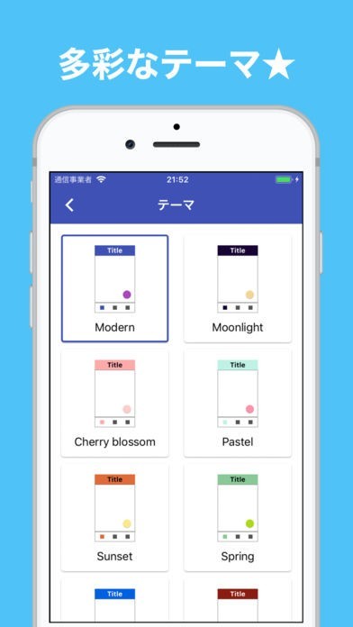 シンプルで便利さを追求した家計簿アプリですが、単調すぎる画面では毎日の入力も飽きてしまいがちです。Moneytuneには、様々なテーマが用意されているので飽きることなく毎日の家計管理を楽しみながら入力することができます。