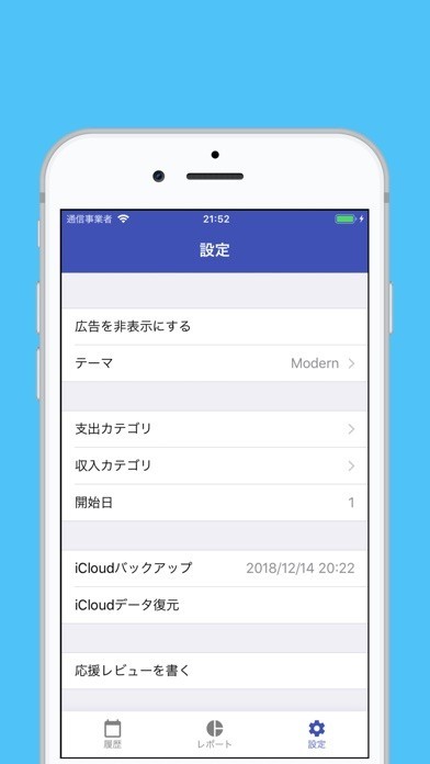 毎日コツコツと家計簿をつけても機種変更したばっかりにデータが消えてしまっては、今まで貯めたデータを家計管理に活かせません。でも、iCloudでバックアップされるので機種変更をしても大切なデータを守ることができるので安心です。