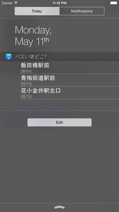バス停でこのアプリを起動し、バス停名を指定すれば、現在のバスの位置情報が取得できます。
