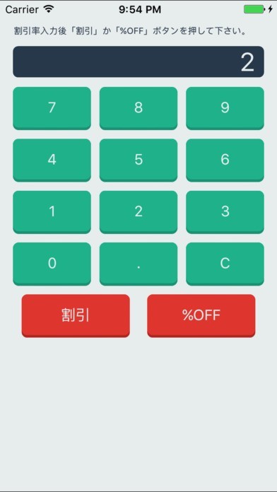 元々の値段と割引率をタップして入れるだけの簡単操作!